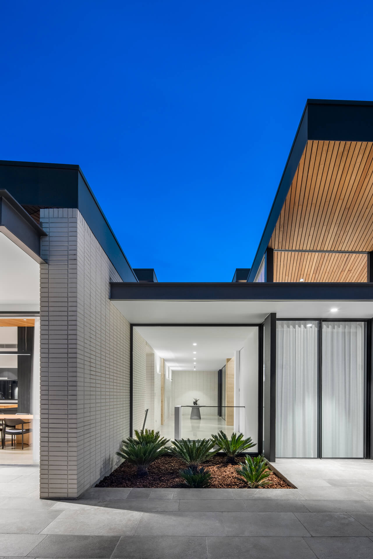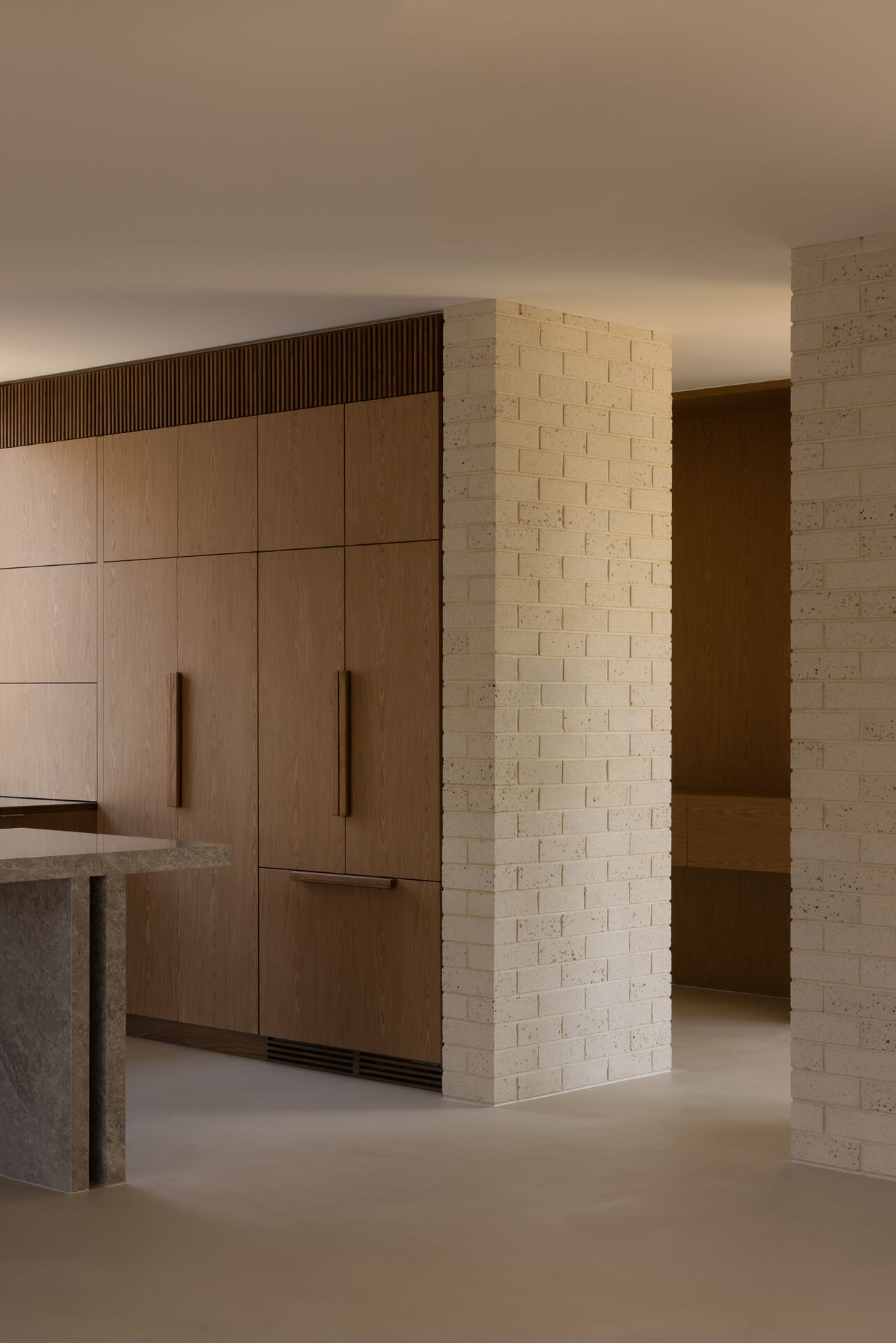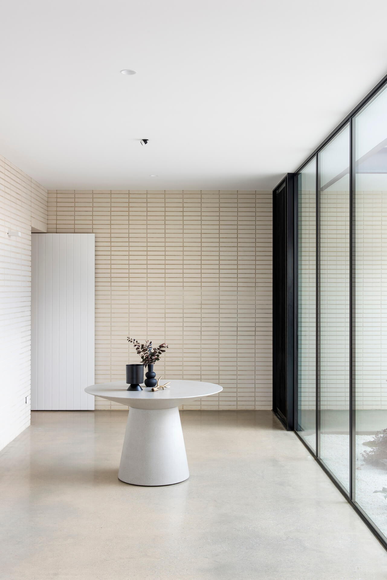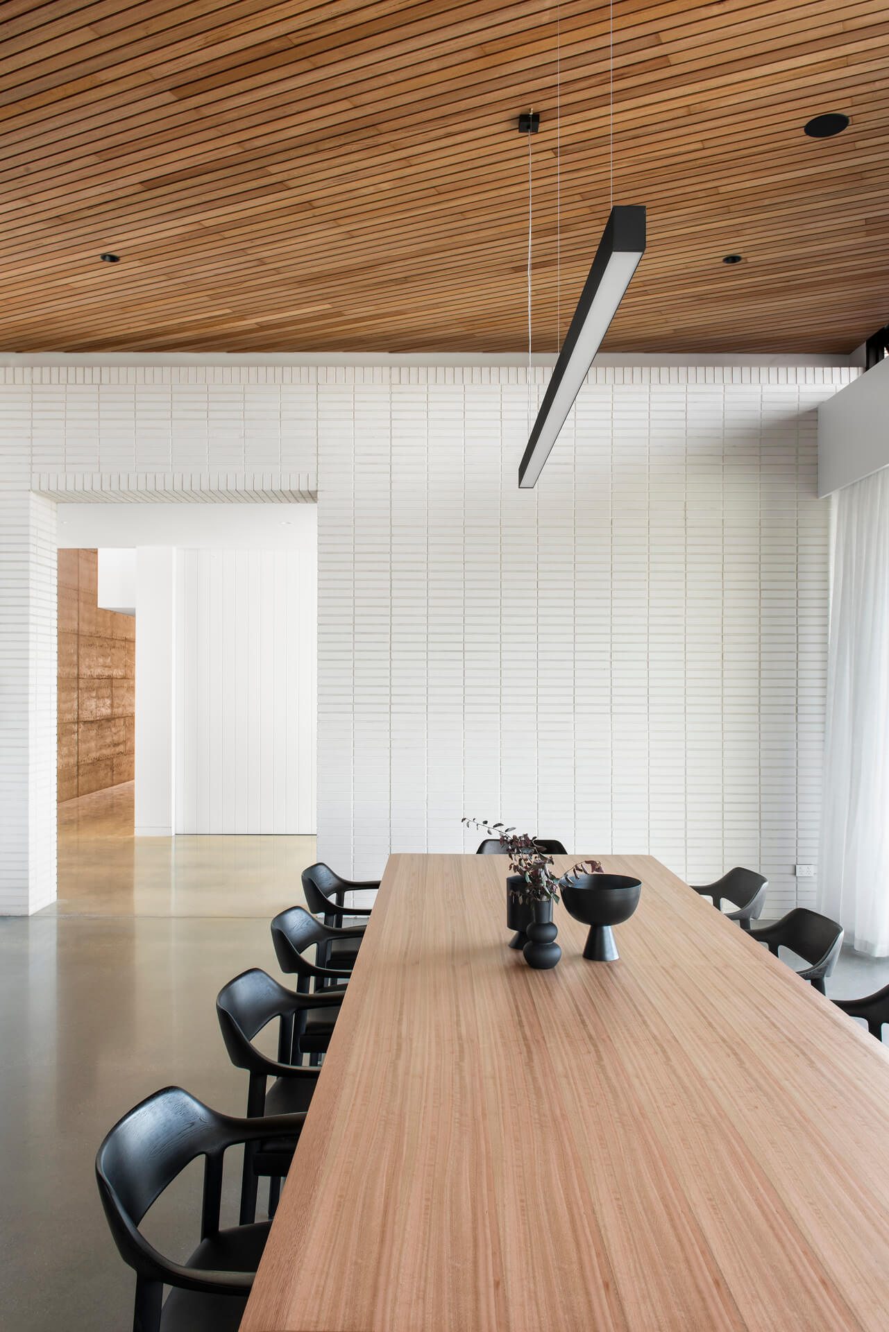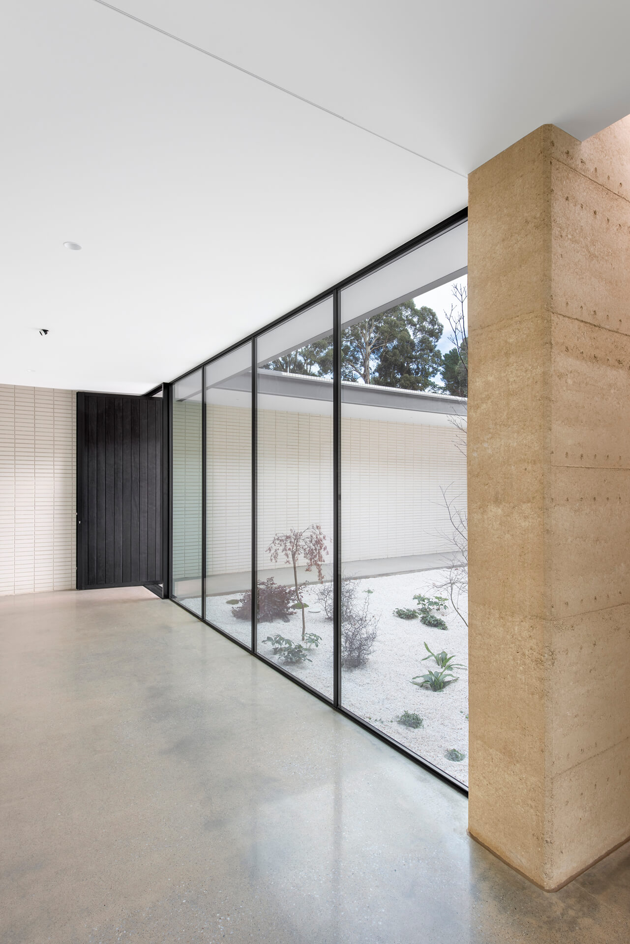 Key construction elements included a 65-metre-long cantilevered rammed earth wall, imported low-profile glazing systems sourced directly from a European fabricator, a fully integrated 12-seat cinema, and a temperature-controlled wine cellar housing over 3,000 bottles. Architecture and interior design by Atelier Bond.