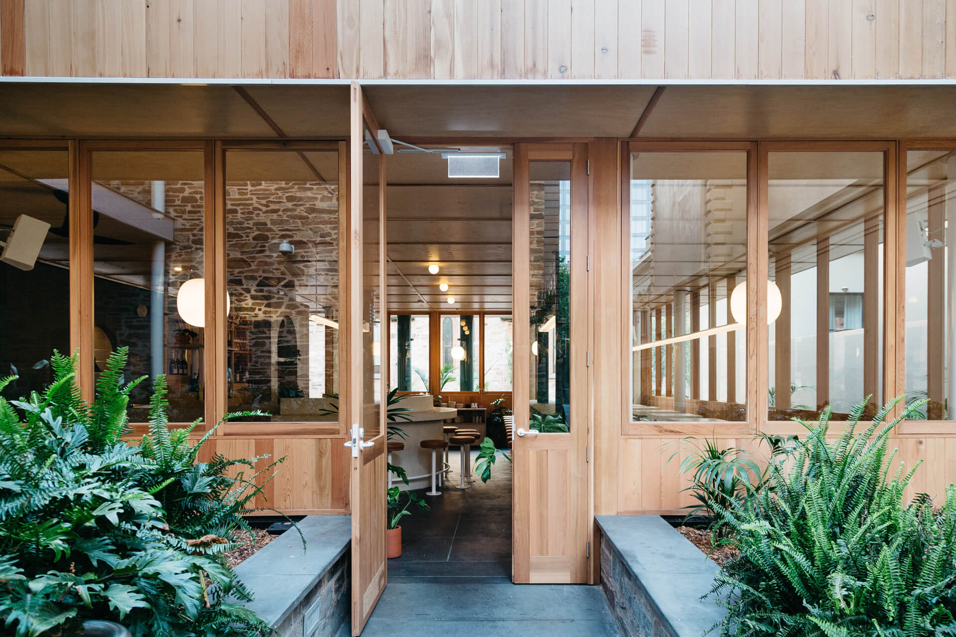Delivered as part of the Adelaide City Council’s urban renewal project under Lord Mayor Sandy Verschoor, this project involved the regeneration of an unused and dilapidated open-air structure into a commercial kitchen, café and associated amenities. The result is an open, airy timber pavilion surrounded by greenery.
