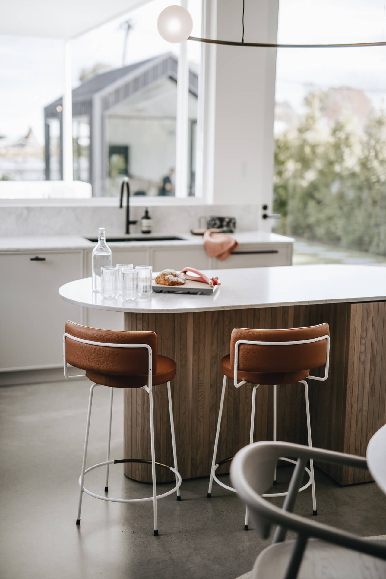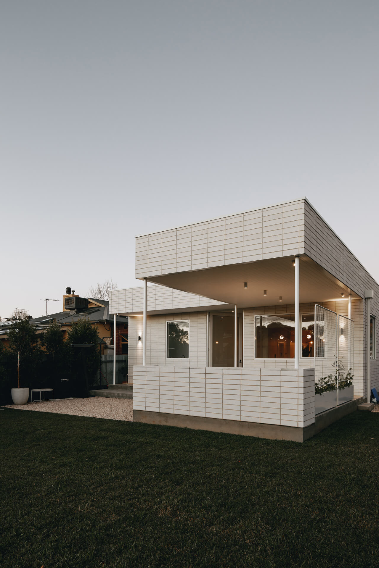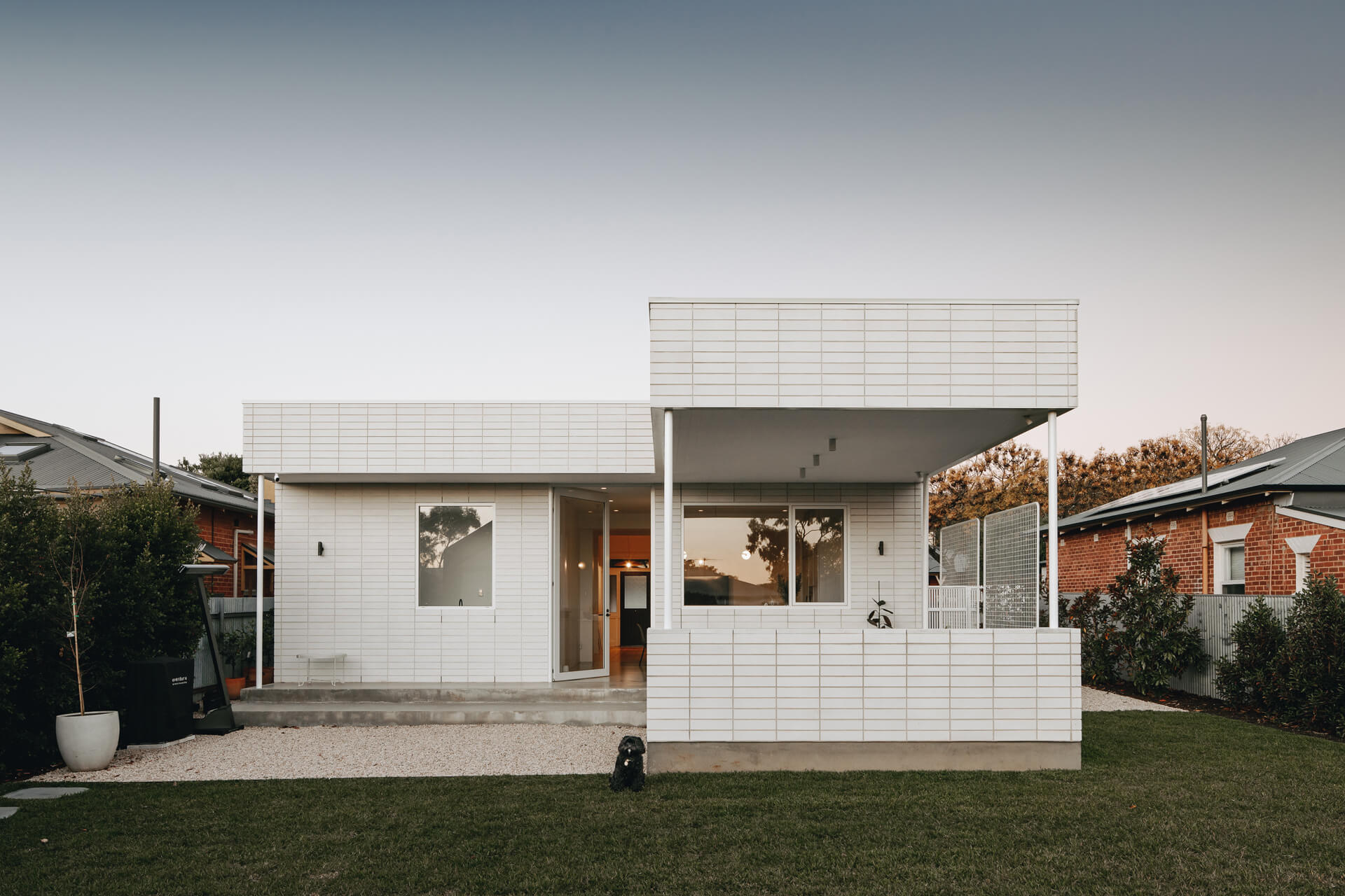 Austral GB honed blockwork was introduced to sit comfortably alongside the existing re-brick architecture, along with the construction of a separate external studio to support work-from-home use. Architecture by Beach DC, with interior architecture by Georgie Shepard (GSID).