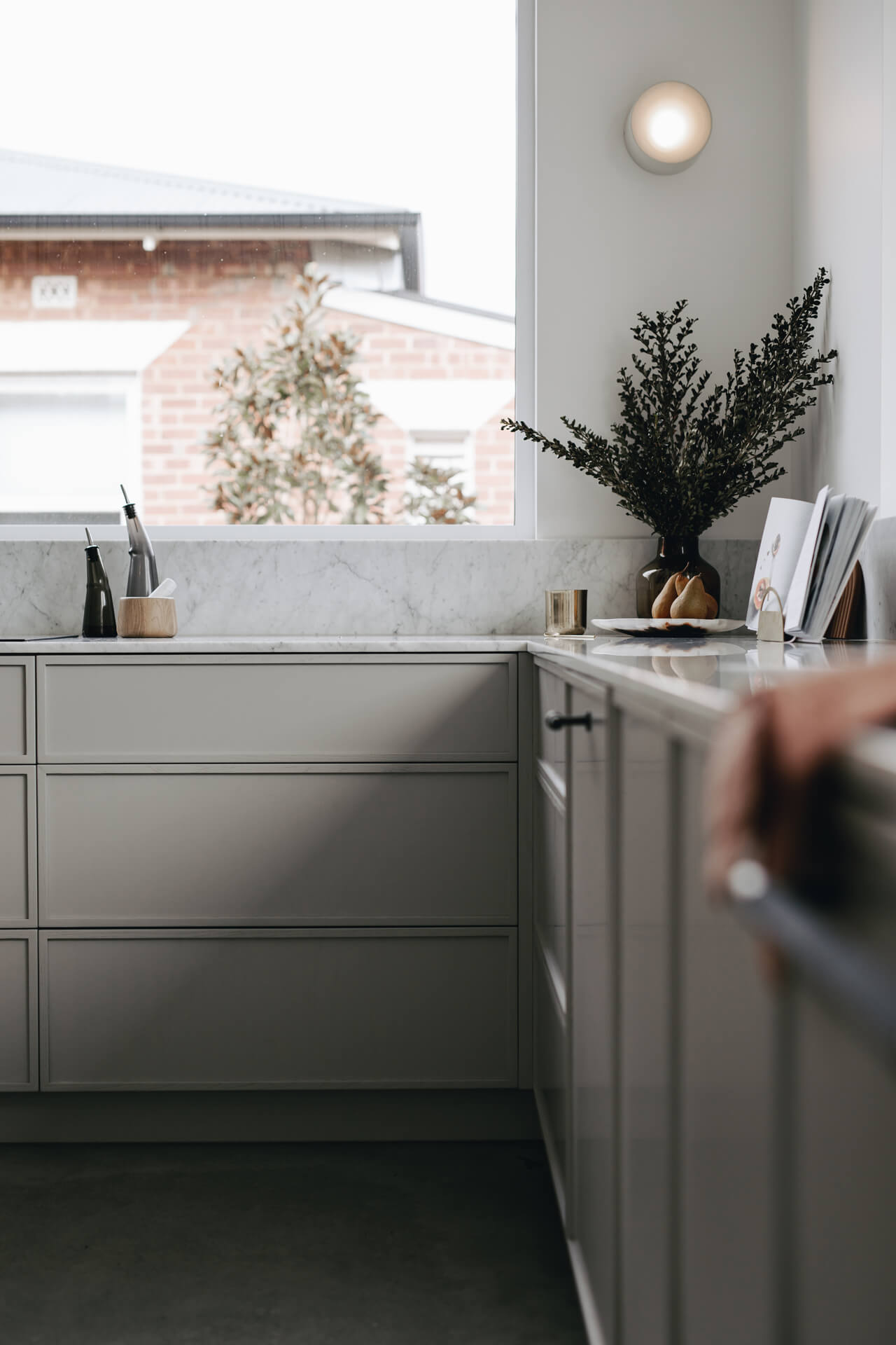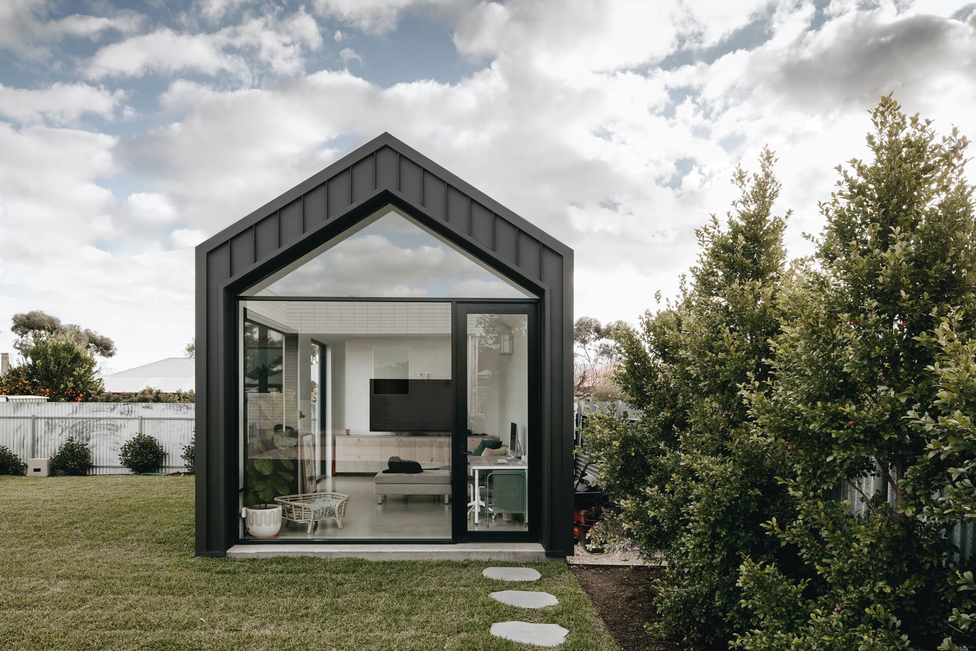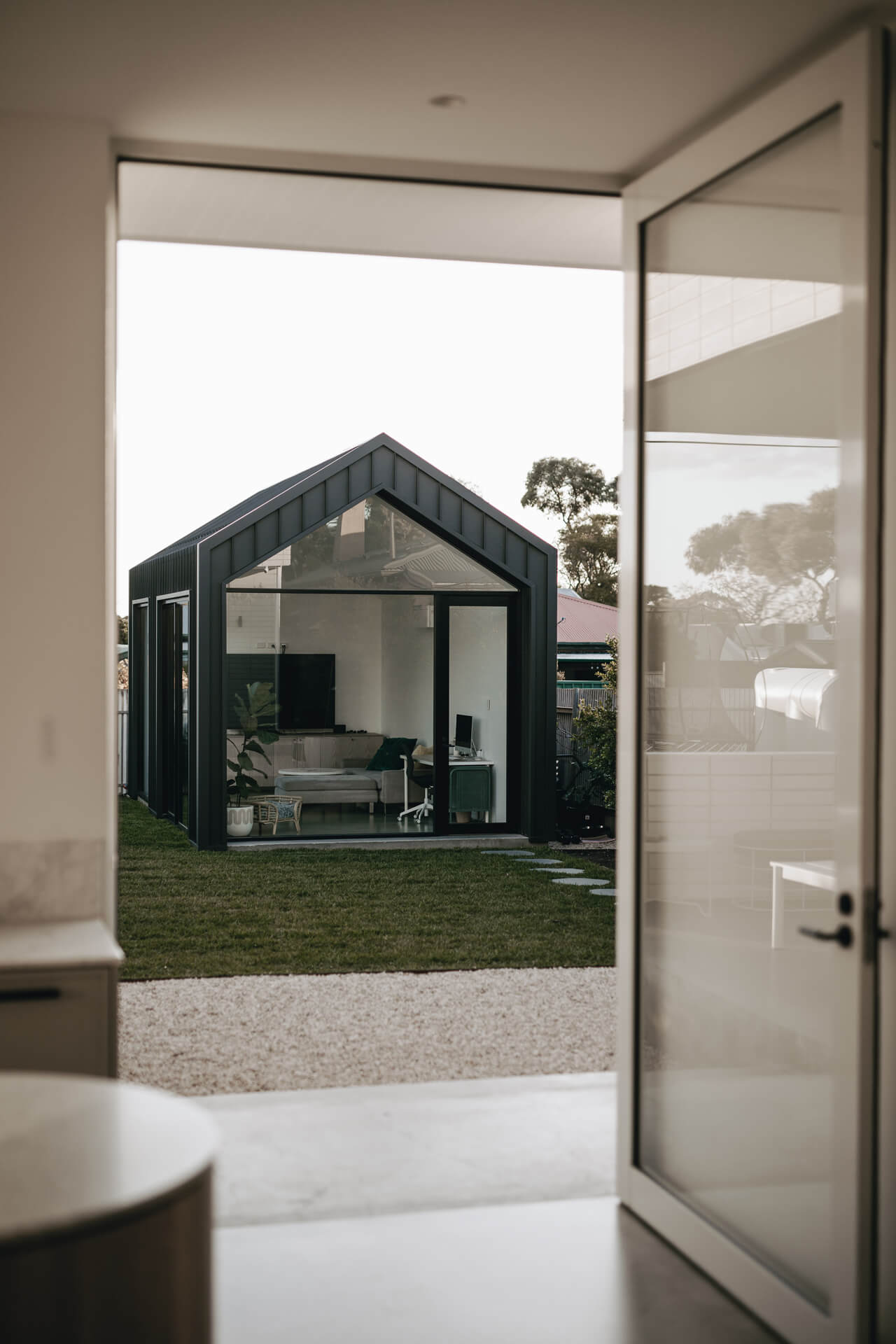 Austral GB honed blockwork was introduced to sit comfortably alongside the existing re-brick architecture, along with the construction of a separate external studio to support work-from-home use. Architecture by Beach DC, with interior architecture by Georgie Shepard (GSID).